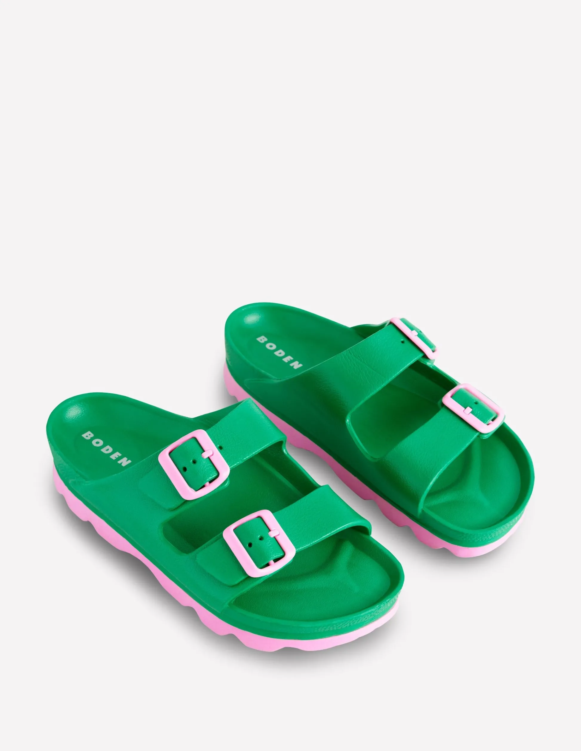 Boden Chaussures Plates|Sandales-Claquettes Lyla à double boucle Émeraude profond/rose tendre