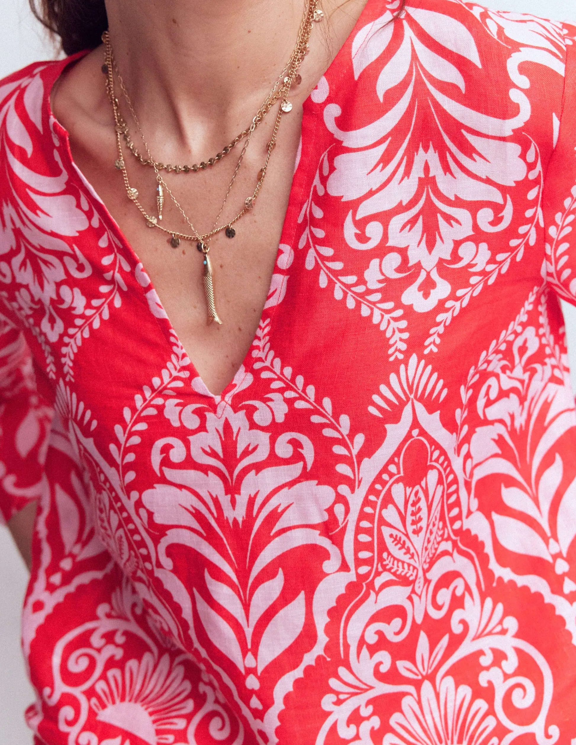 Boden Robes & Combinaisons|Robes Coupe Petite-Robe en coton à volants sur le devant Rouge persan
