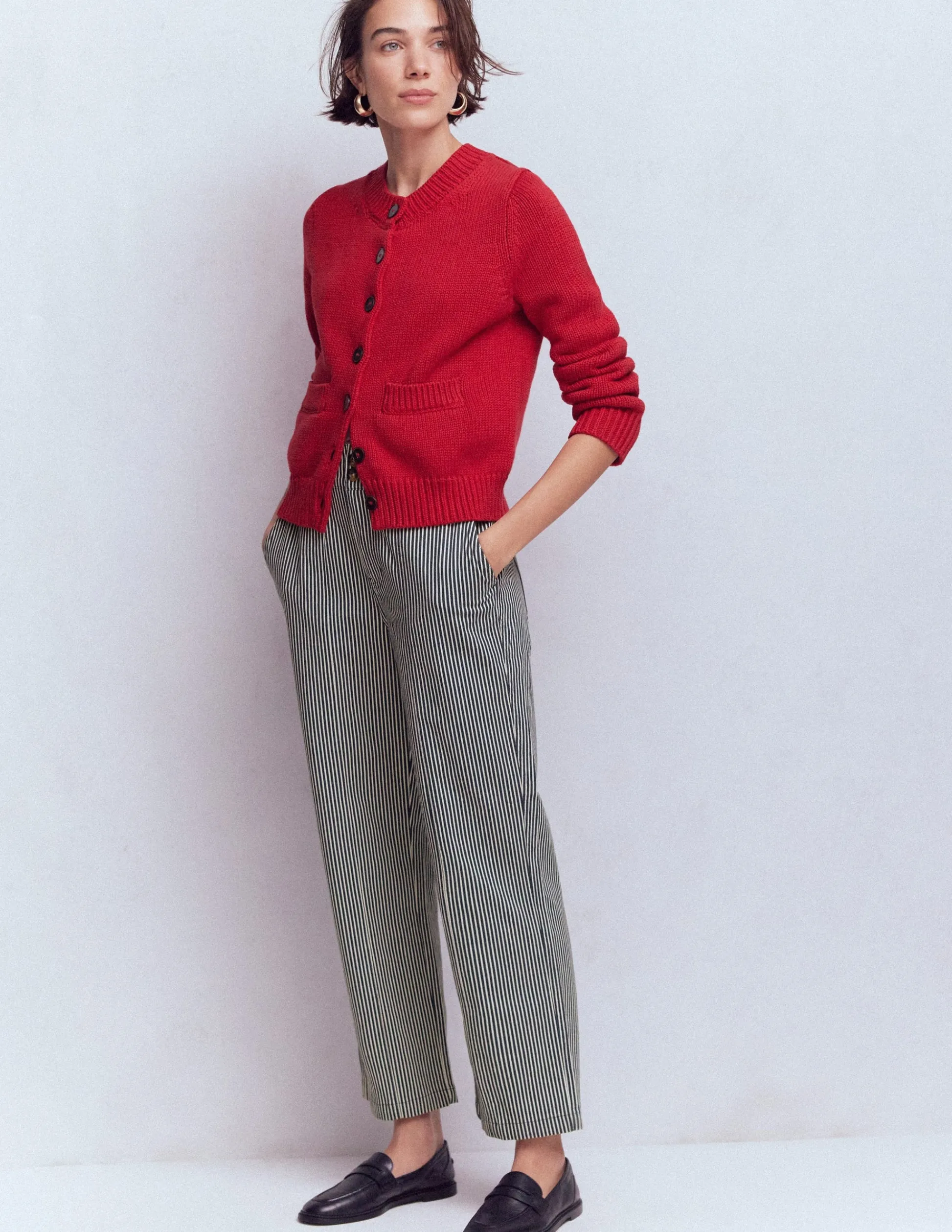 – Braguette zippée et double bouton centré à la taille sur le devant