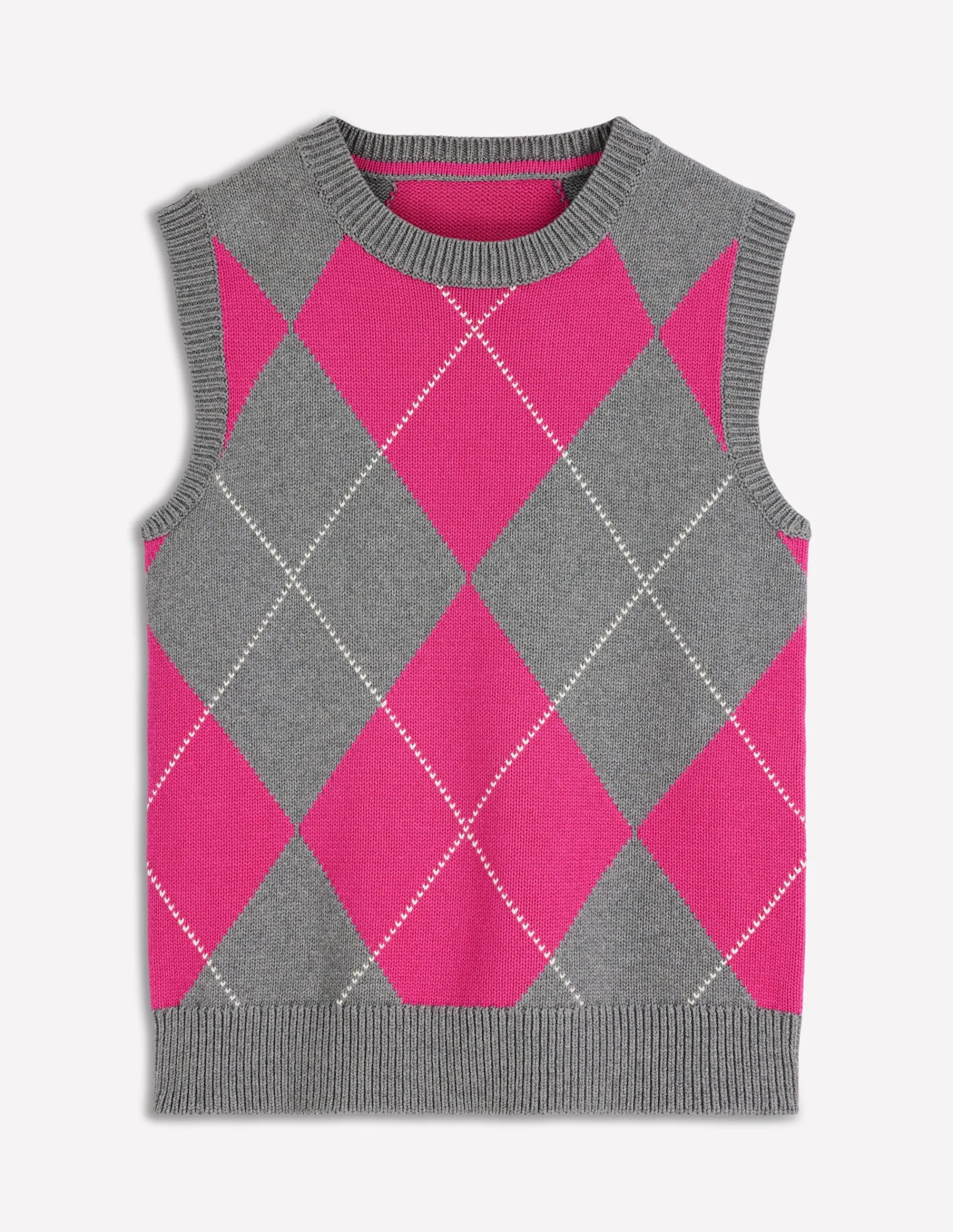 | Color | Motif argyle rose/gris |