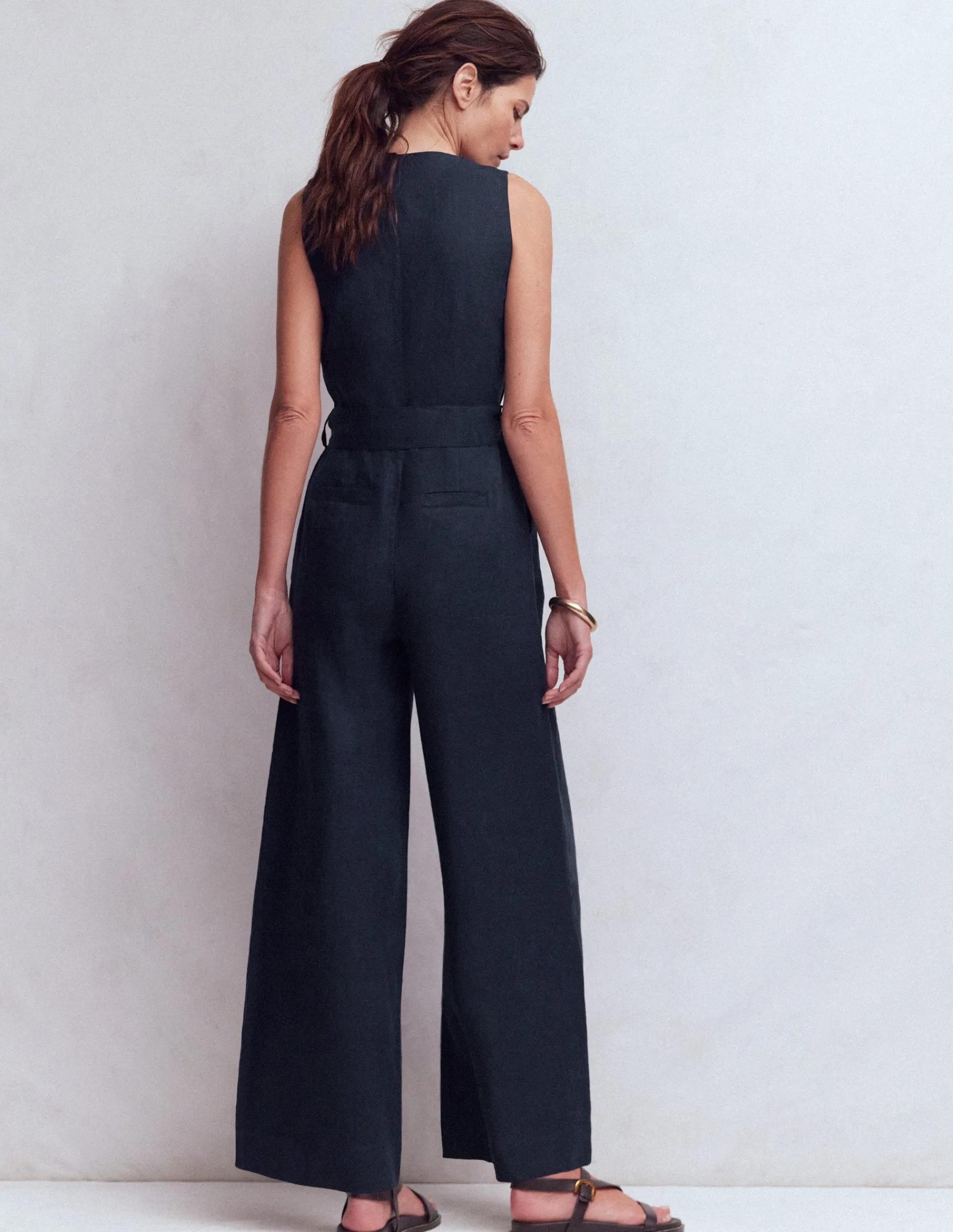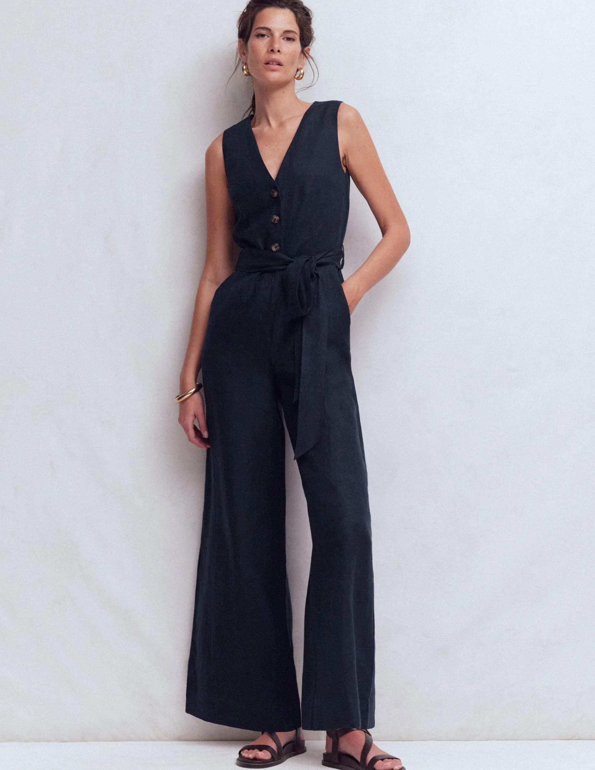 – Coupe ajustée au niveau de la taille, des hanches et des cuisses, puis large au niveau des jambes