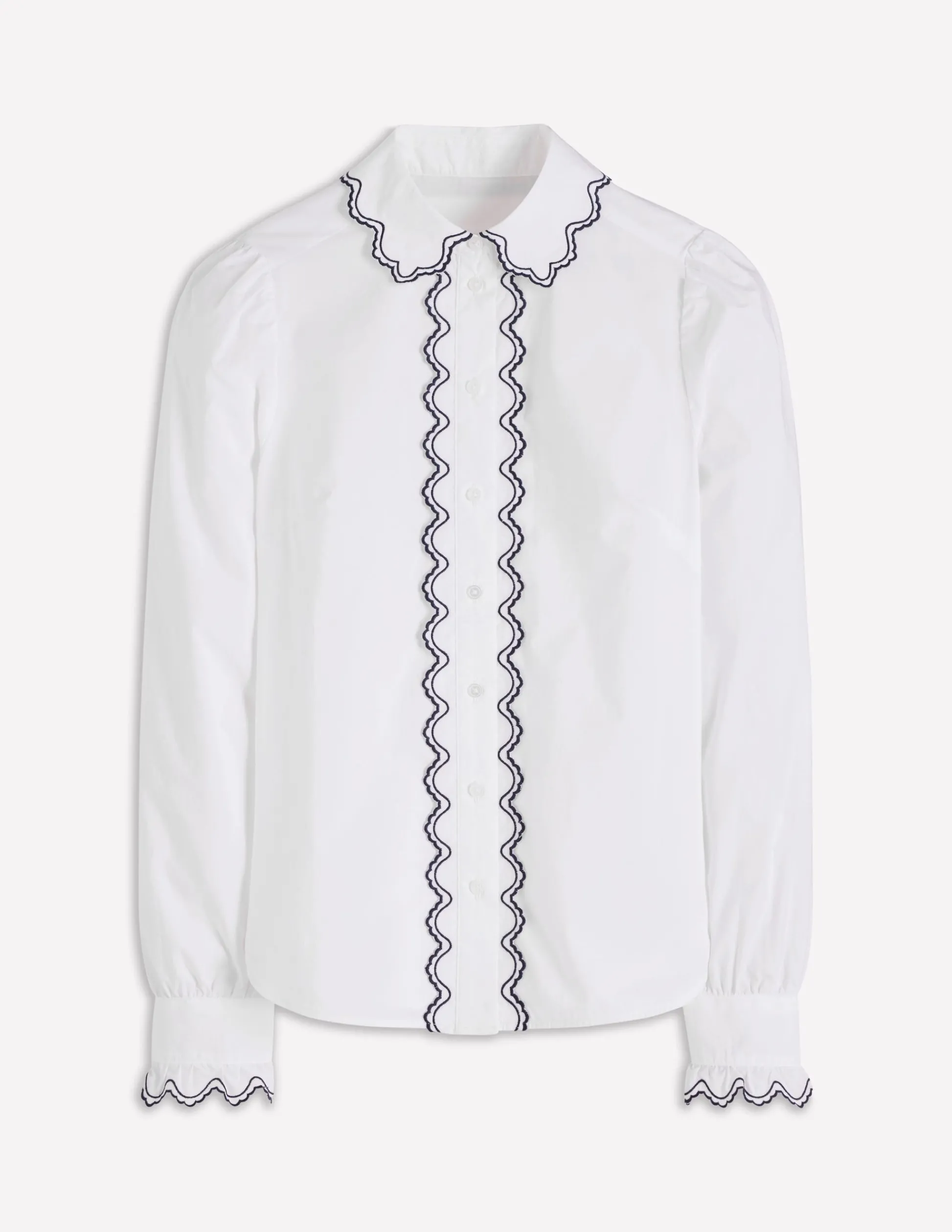 | Color | Blanc, broderie bleu marine |