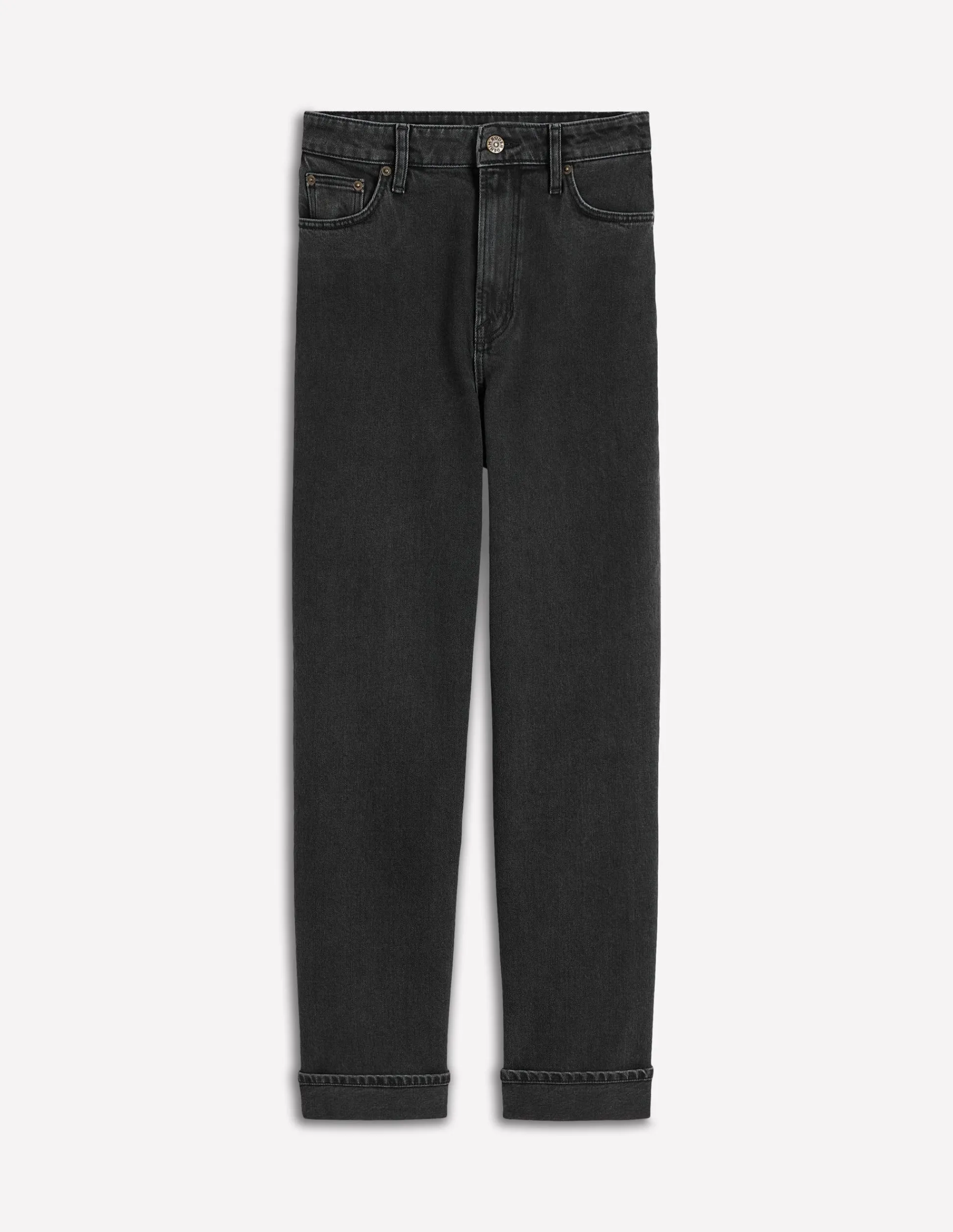 – Bouton clou centré à la taille et braguette zippée