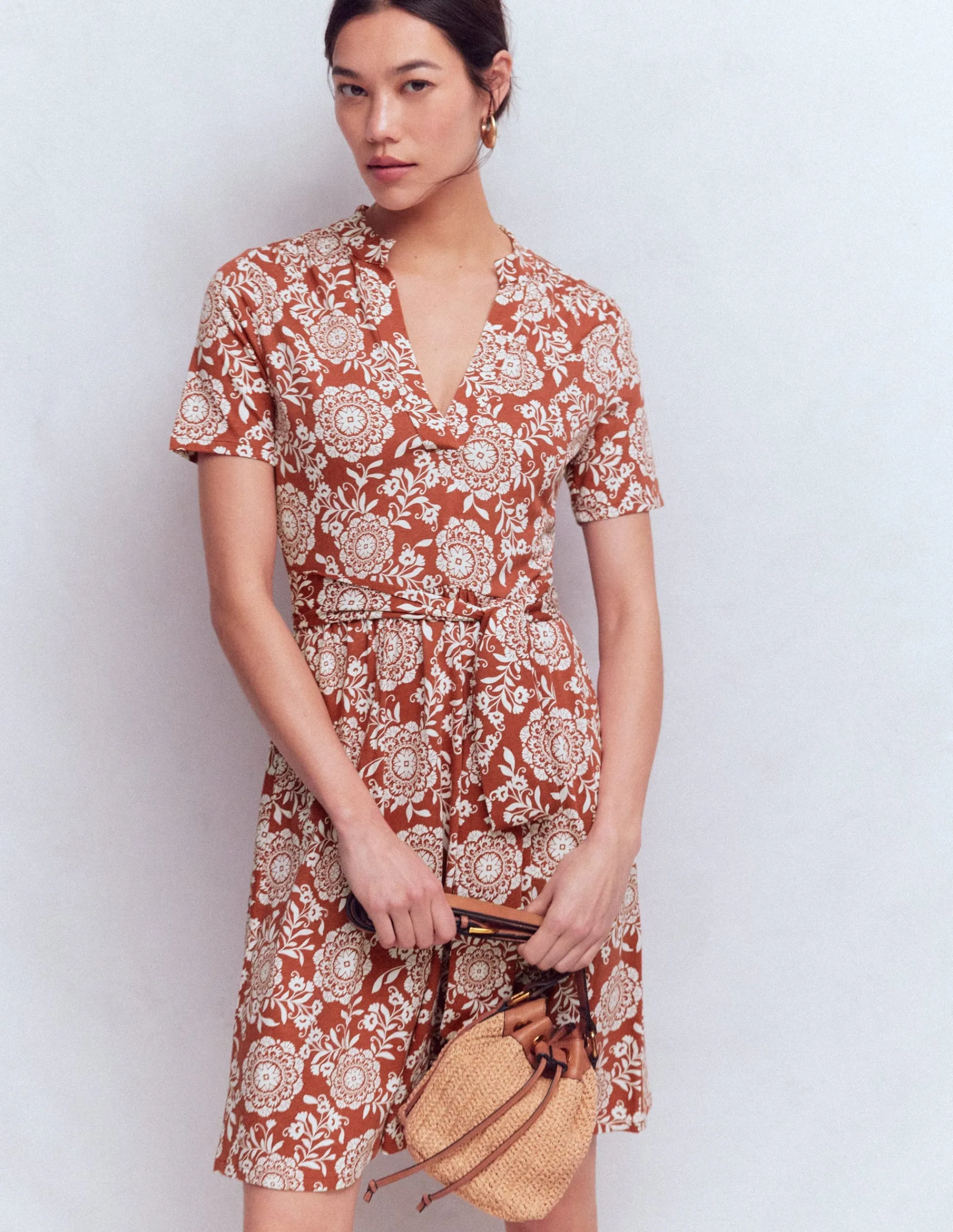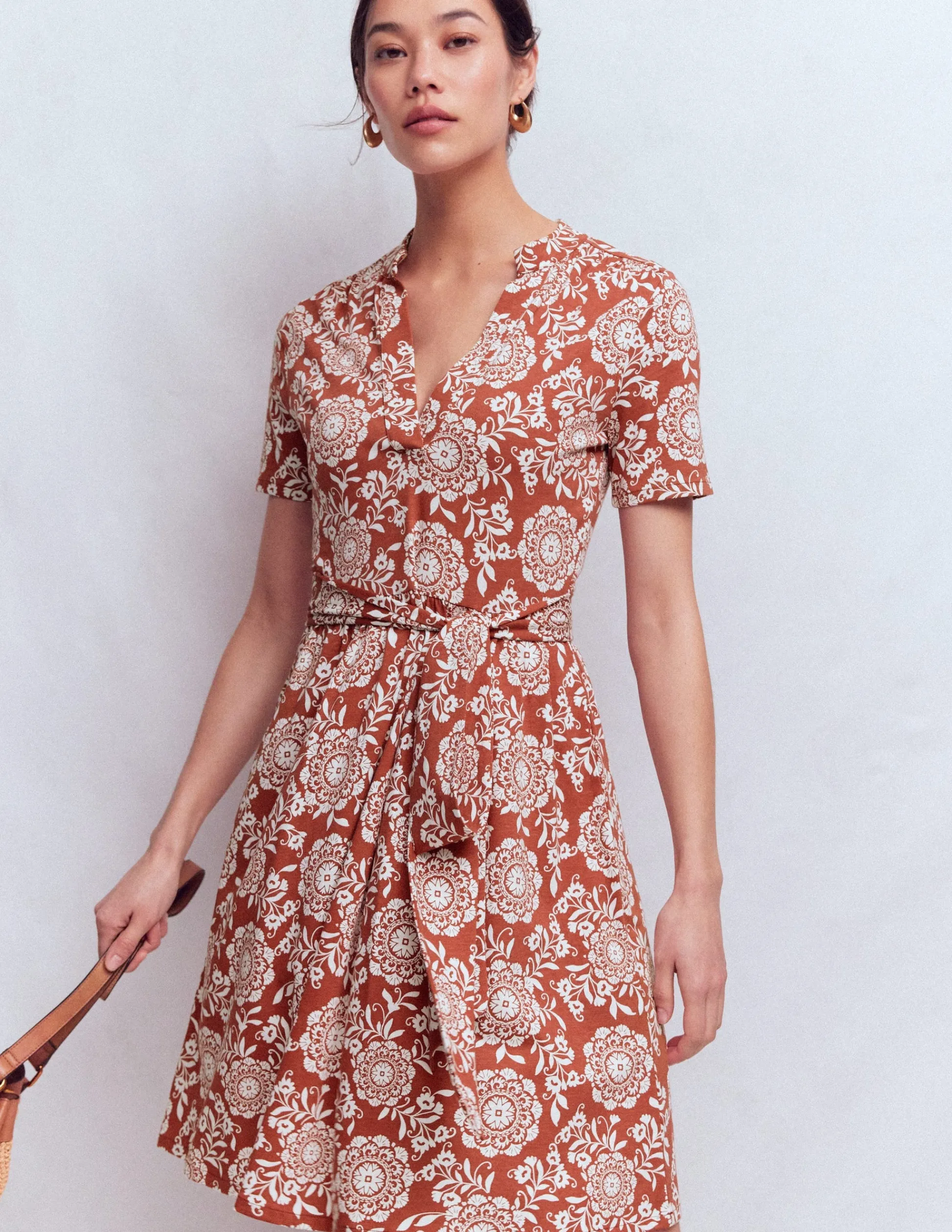 Boden Robes & Combinaisons|Tenues De Travail-Robe midi Eve en jersey Châtaigne profonde