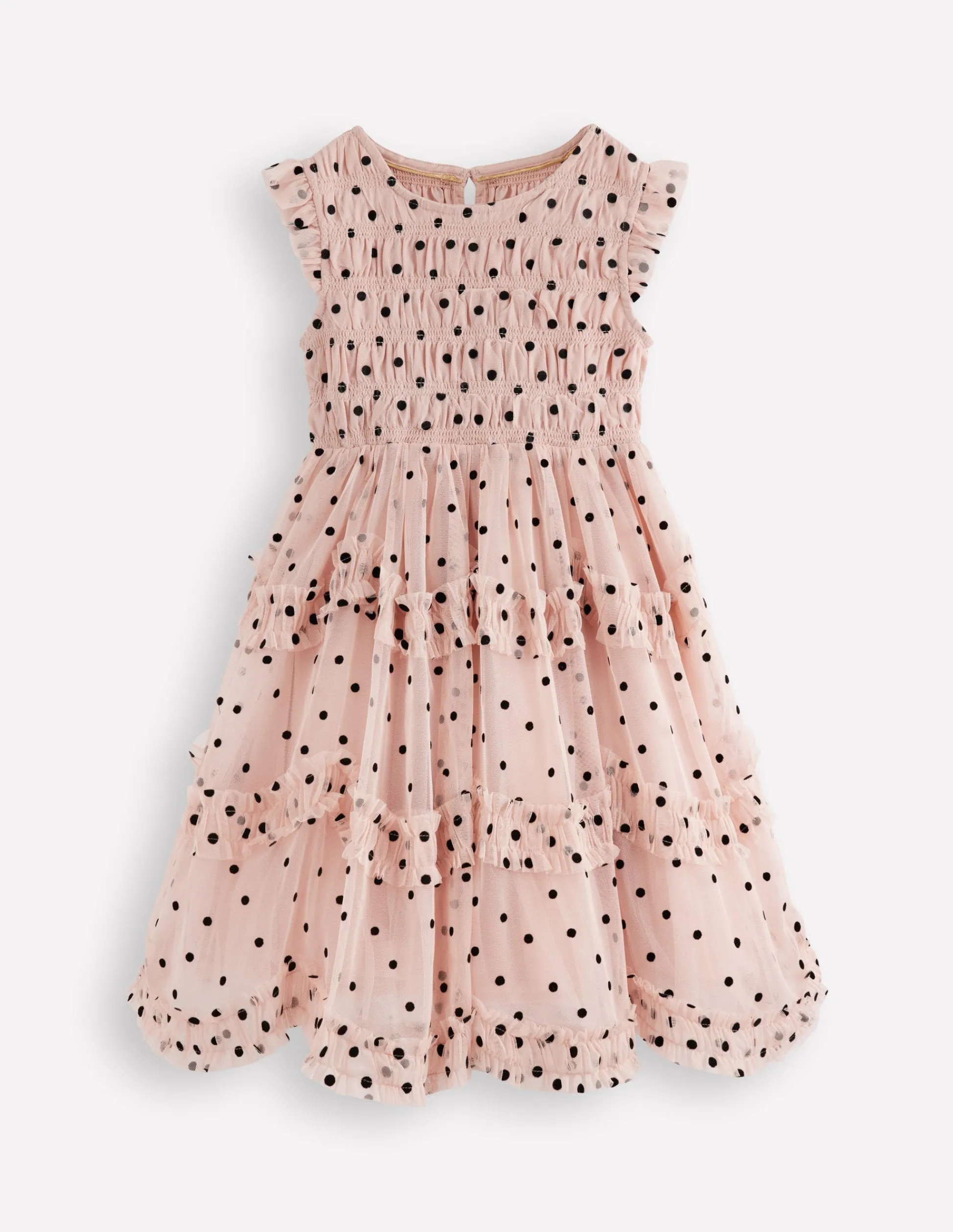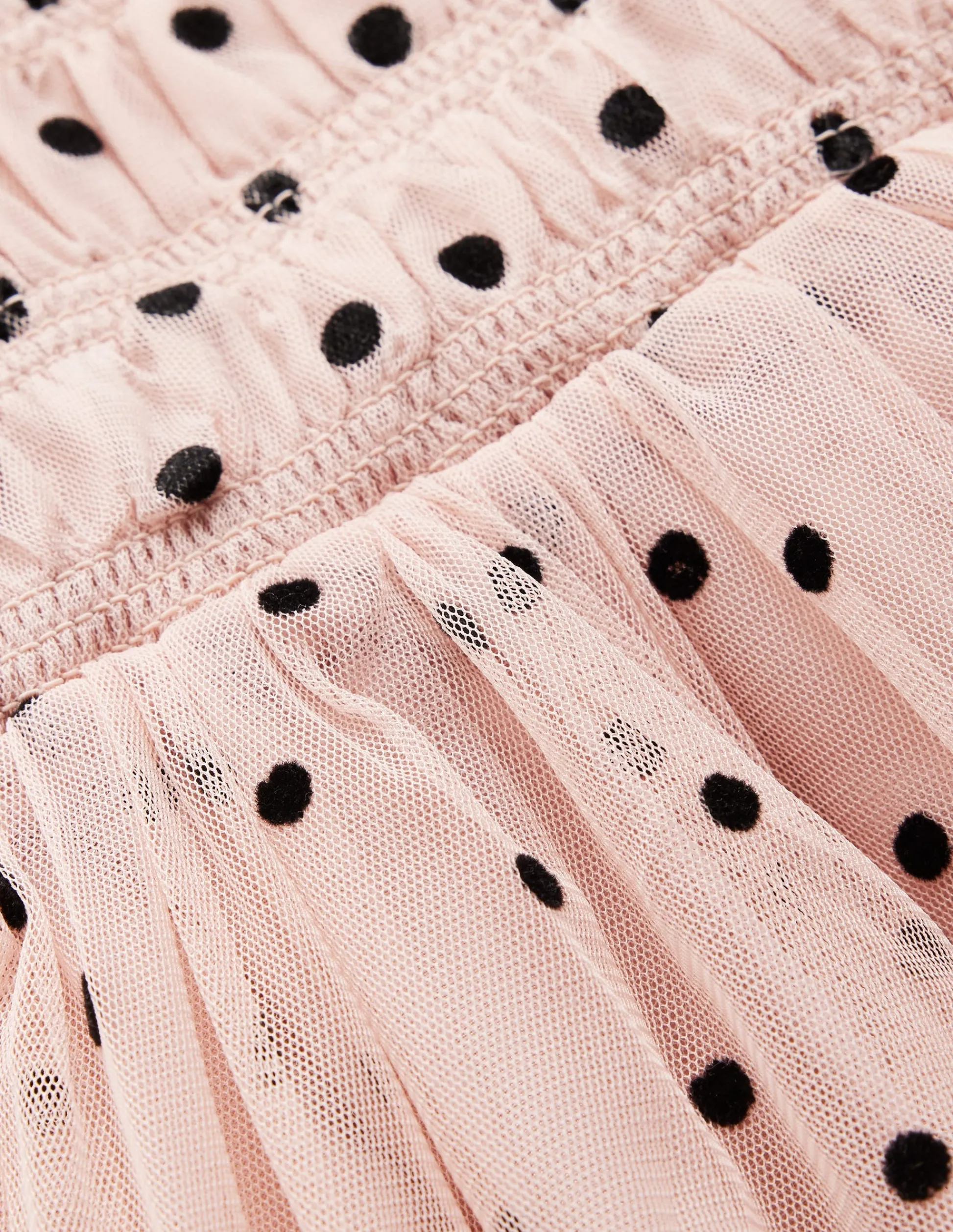 | Color | Pois floqués rose fumée |