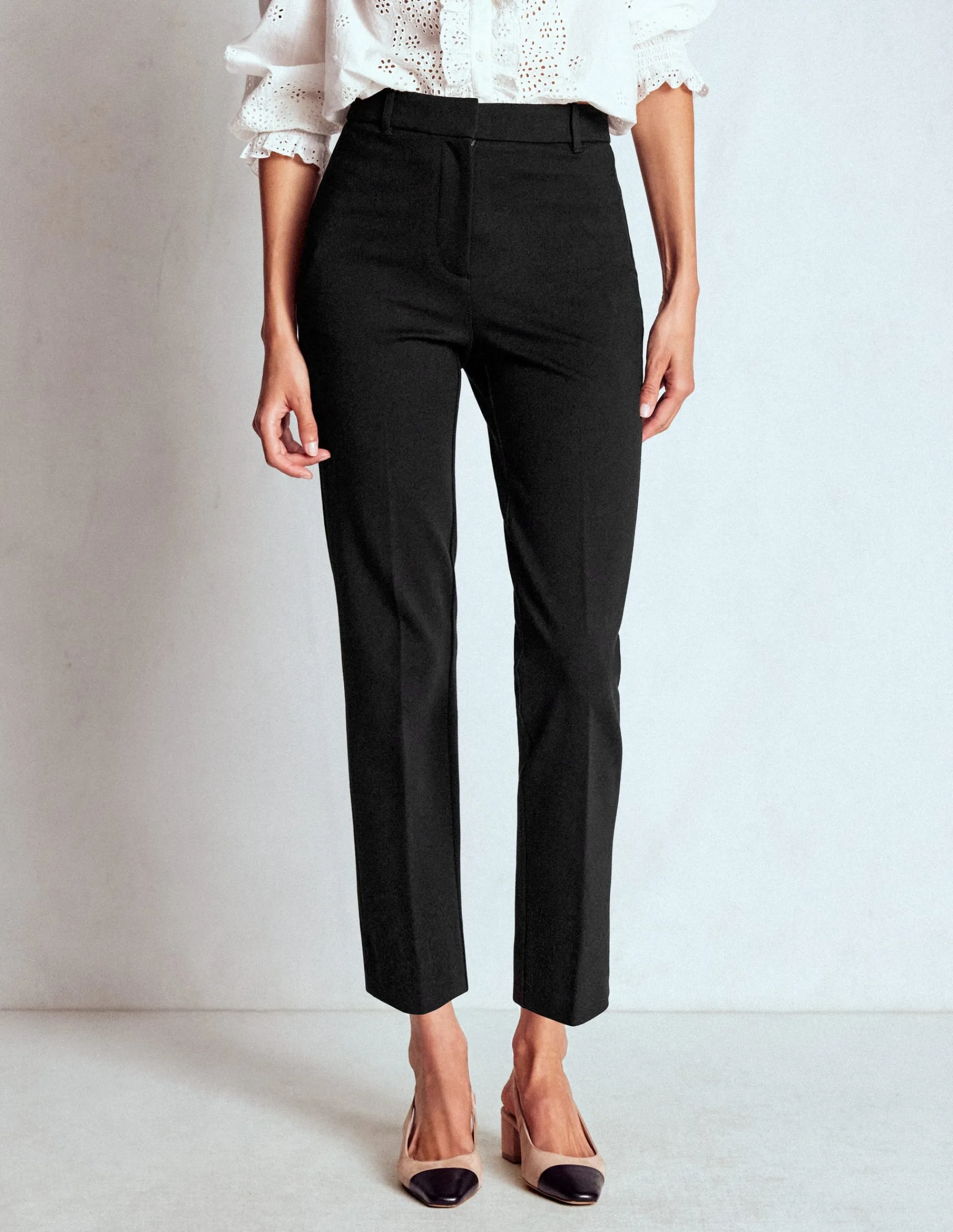 – Fermeture à agrafe invisible centrée sur le devant de la taille et braguette zippée