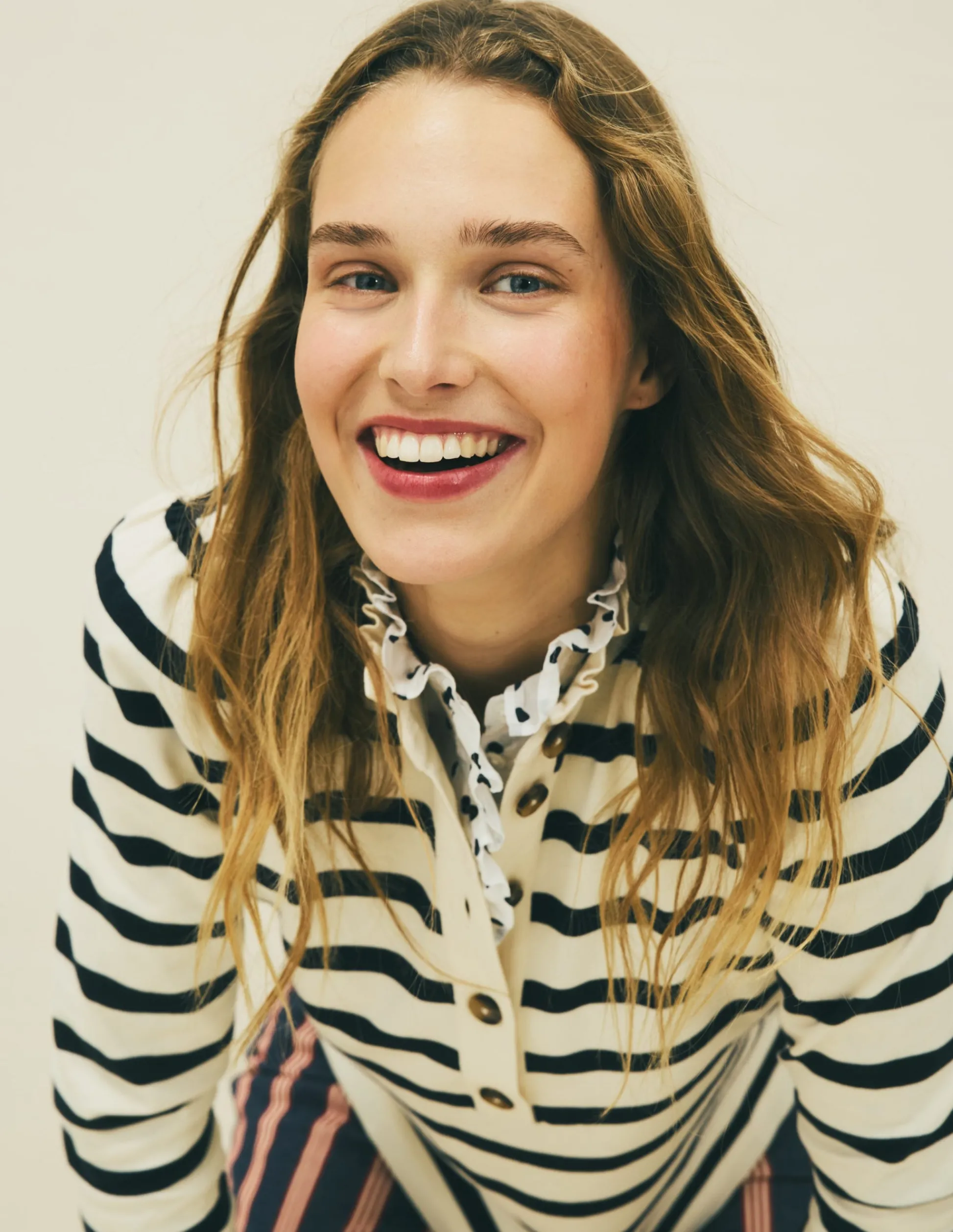 | Color | Ivoire et Bleu Marine Rayé |